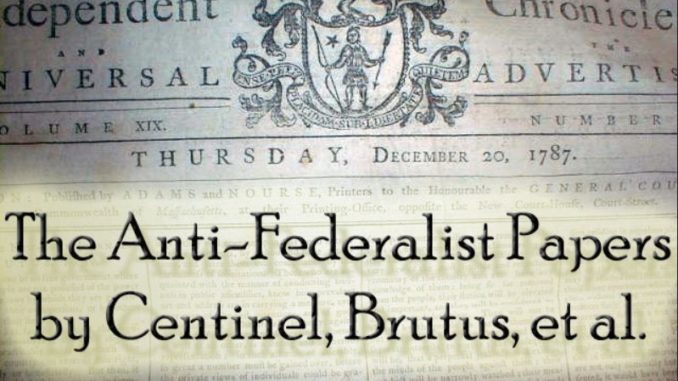 Unlike the Federalist, the 85 articles written in opposition to the ratification of the 1787 United States Constitution were not a part of an organized program. Rather, the essays–– written under many pseudonyms and often published first in states other than New York — represented diverse elements of the opposition and focused on a variety of objections to the new Constitution. In New York, a letter written by “Cato” appeared in the New-York Journal within days of submission of the new constitution to the states, led to the Federalists publishing the “Publius” letters. “Cato”, thought to have been New York Governor George Clinton, wrote a further six letters. The sixteen “Brutus” letters, addressed to the Citizens of the State of New York and published in the New-York Journal and the Weekly Register, closely paralleled the “Publius” newspaper articles and Justice Robert Yates, is the presumed author. Melancton Smith’s speeches are considered part of the Anti-Federalist Papers and he may have been the author of the “Federal Farmer” articles.